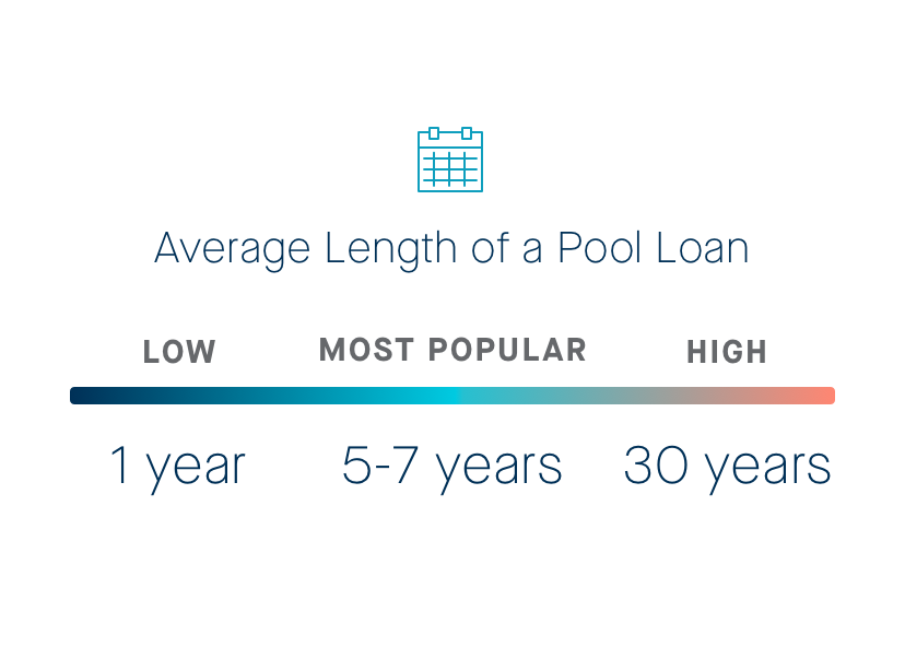 The average length of a pool loan can range anywhere from 1-30 years, depending on your needs and how much you need to finance.